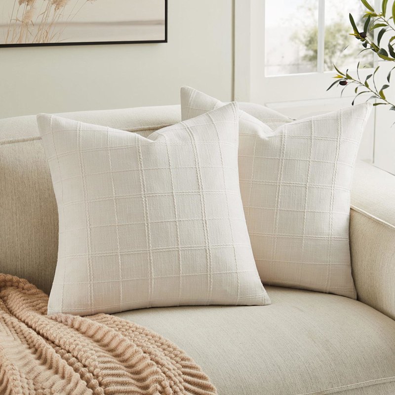 หมอนอิงนุ่มสบายสีขาวถักหมอน